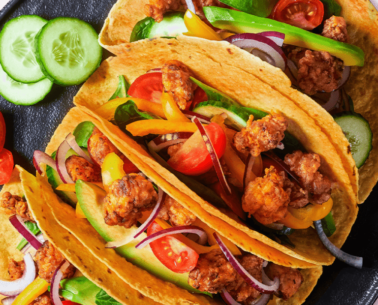 Tortilla crujiente rellena de queso fundido y una mezcla fresca de vegetales, ideal para un snack saludable y delicioso