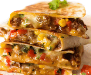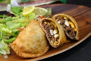 Tortilla dorada y crujiente rellena de carne , queso fundido y sabrosos ingredientes, perfecta para un snack rápido y delicioso